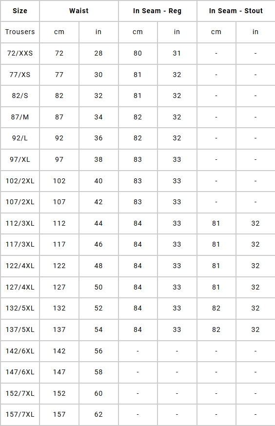 Grille des Tailles